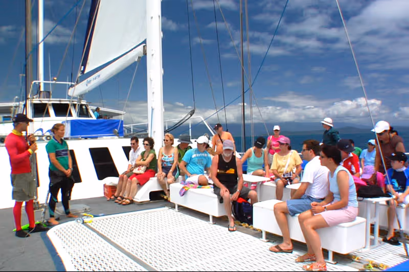 Wavedancer arrives at Low Isles and your activities commence. The coral viewer and shuttle vessels leave for the island and continue to run throughout the day. Your snorkelling equipment is available from the storage containers on the foredeck of Wavedancer.