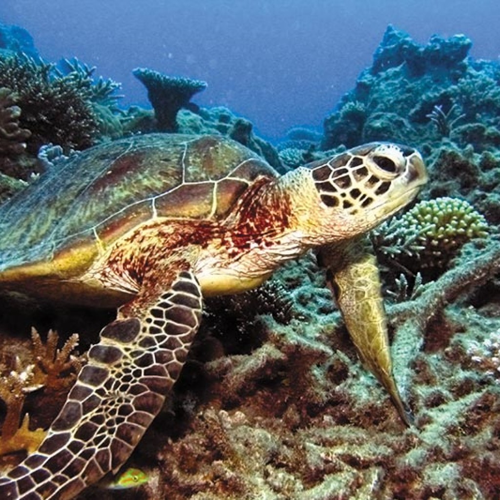 - Unspoilt coral cay with shady trees and a protected lagoon